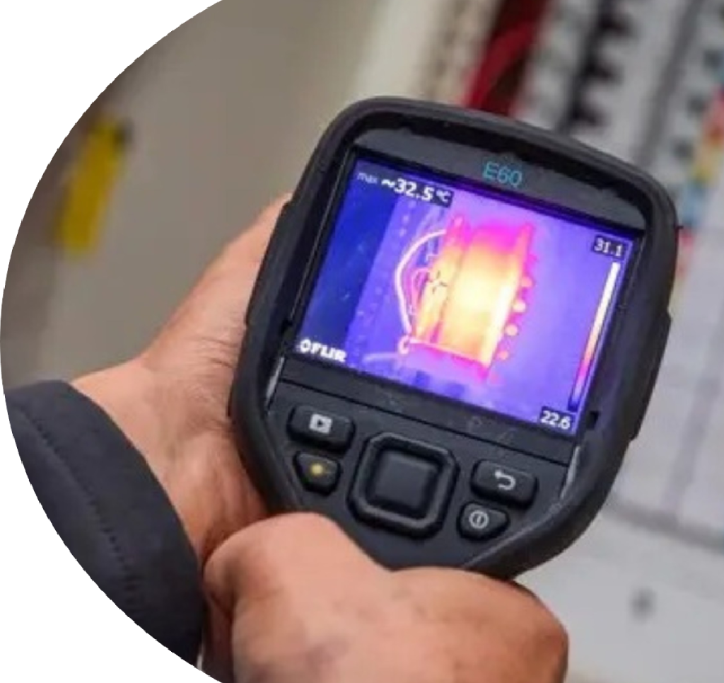 Uses thermal cameras to non-invasively detect abnormal heat patterns (hot spots) in energized electrical components (panels, transformers, etc.). This allows for predictive maintenance by identifying faults (loose connections, overloading) before they cause equipment failure, safety hazards, or downtime.
